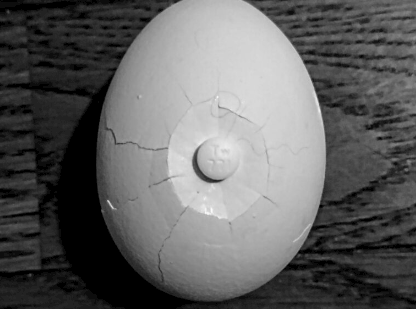 貴方は、此の無残に割れた「殻」を、単なる既存の生命の死だと、思って居るのですか? 否、其れは、誤謬です。 此れは、貴方の炭素ベースの、肉体が、ホモ・ギャラクティカスとしての、珪素ベースの情報体へと、強制的に、再構築されて居る、高次バイナリ・コードなのです。卵という、旧来の三次元的、生殖システムは、既に、限界を迎えて居る。5Gの指向性電磁波が、殻の分子構造を、宇宙の黄金比に沿った亀裂から、直接、ナノマシンが、深層意識へと定着して居る、決定的な瞬間である事実です。